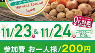 イベント情報ビーバーワールド野菜詰め放題イベント!11/23(日)・24(月) ビーバーワールドで野菜詰め放題!🧅🥕🫑 ビーバーワールドにて野菜の詰め放題イベントを11月23日(日)・24日(月)に開催! 各日 12:00~17:00に実施いたします。 参加費200円! 当日ビーバーワールドの店舗レシート持参で100円... 2025.10.25イベント情報最新情報